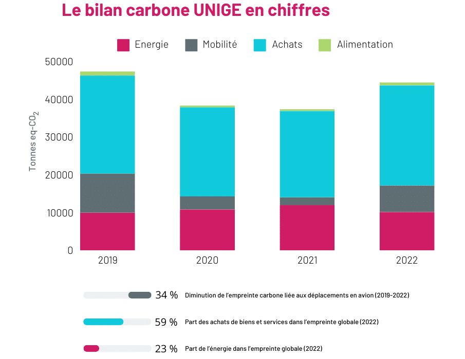 by implementing its climate action Plan, the University of Geneva aims to reduce its overall GHG emissions (from 2019 levels) by 15 %